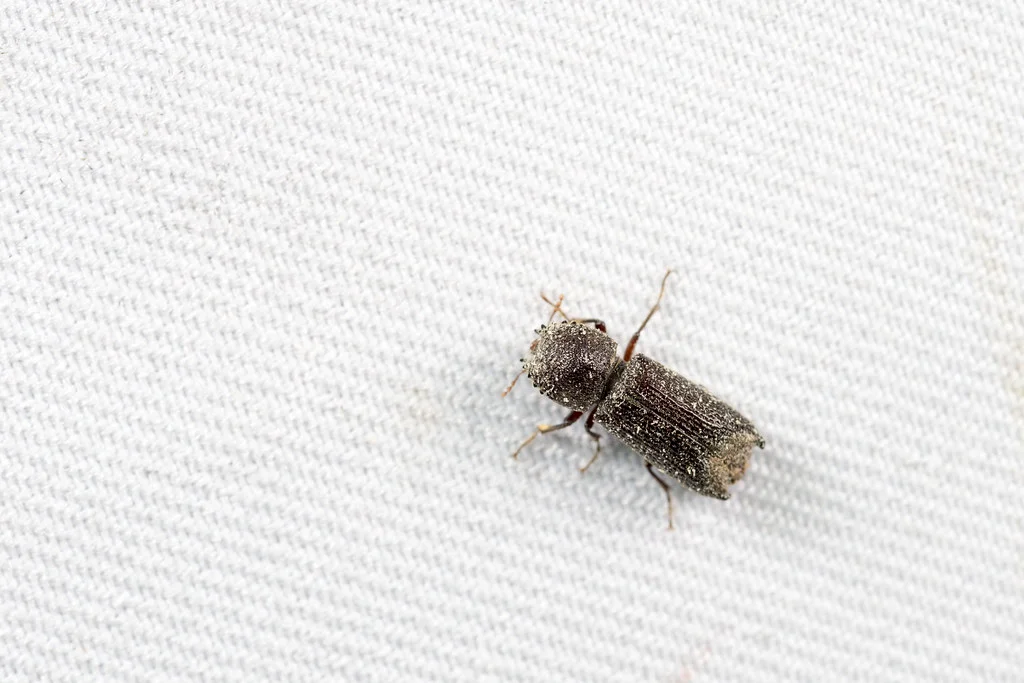 Dorosłe chrząszcze osiągają 8-15 mm długości i są barwy ciemnobrązowej. Wierzch ciała pokryty krótkim, rzadkim, żółtym omszeniem, przez co ciało owada wydaje się matowe. Czoło z podłużną linią środkową i wyraźny szew czołowo-skroniowy (cecha ta jest łatwiejsza do zauważenia u samca). Identyfikacja do gatunku jest możliwa na podstawie analizy cech morfologicznych dorosłych chrząszczy, zwłaszcza, że w drewnie występują podobne morfologicznie chrząszcze z rodziny kapturnikowatych.