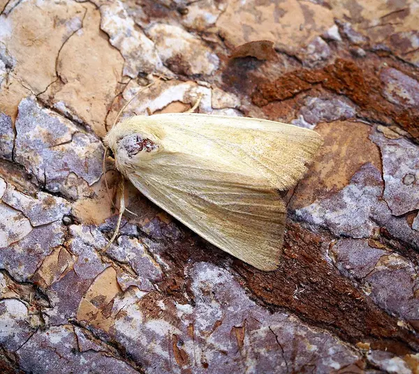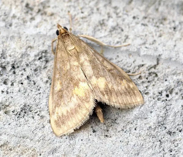 Osobniki dorosłe to motyle o rozpiętości skrzydeł 25-30 mm. Przednie skrzydła są jasnobrązowe do brunatnych z ciemniejszym brzegiem i dwoma falistymi liniami poprzecznymi, tylne natomiast są barwy słomkowej. Jaja są białe, okrągłe, lekko spłaszczone, średnicy około 0,5 mm, układane w złoża po 20-30 i więcej sztuk. Gąsienice długości 25-30 mm mają zabarwienie cieliste z brązowymi plamkami na każdym segmencie i z ciemniejszym paskiem na grzbiecie. Poczwarka jest jasnobrązowa.